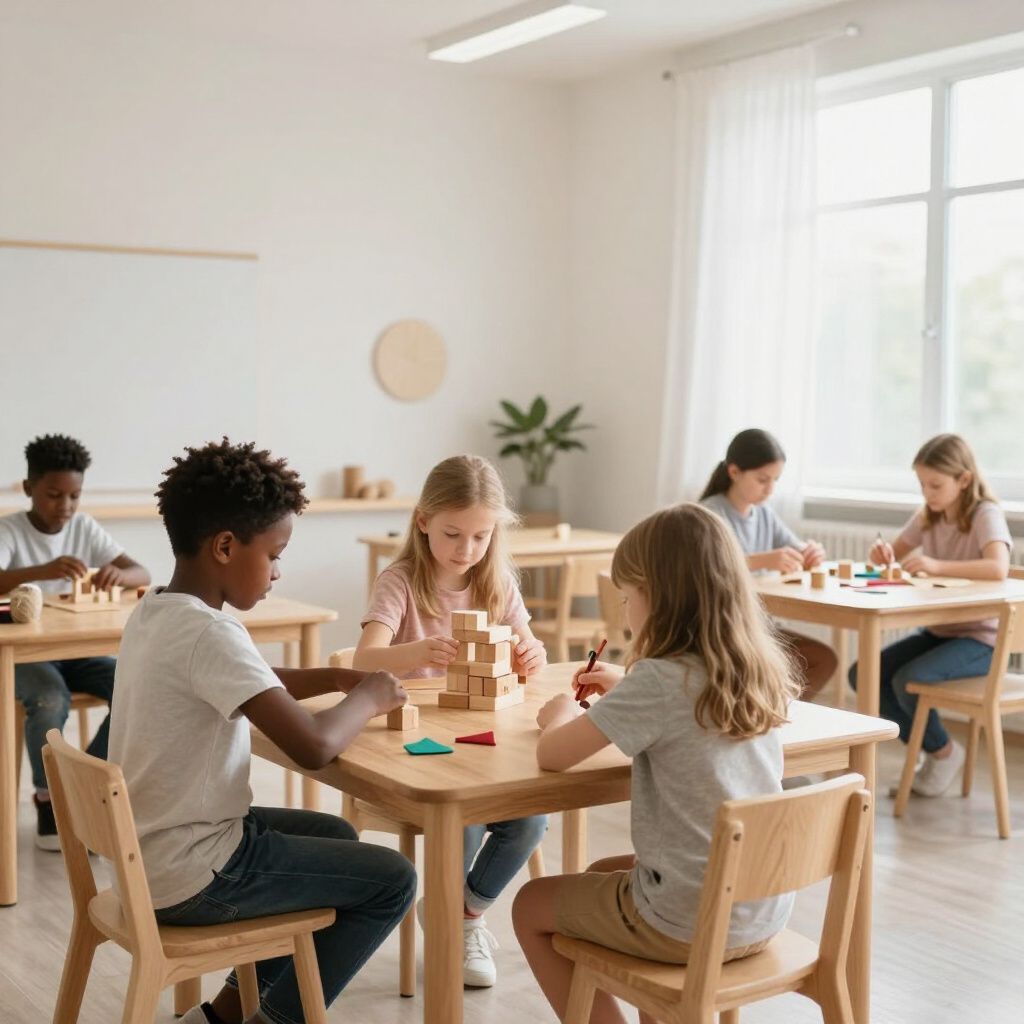 Students transition into more complex problem-solving and interdisciplinary projects, fostering critical thinking and collaborative skills.